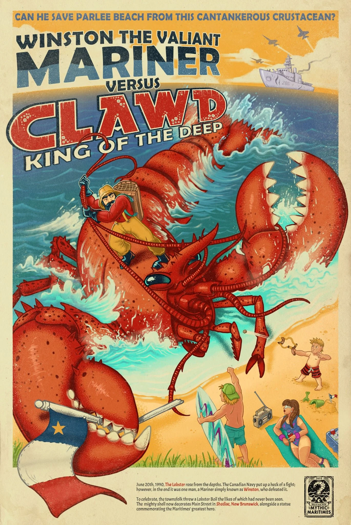 New Brunswick digital artist Tim Murray blends his background in game design and retro aesthetics to craft bold, cinematic visuals that celebrate imagination and local lore. As Creative Director at Gogii Games and the artist behind JetRex Design, his new series, Mythic Maritimes, reimagines Atlantic Canada’s wildest stories, sea monsters, legends, and ghostly encounters, through a vibrant, modern lens.